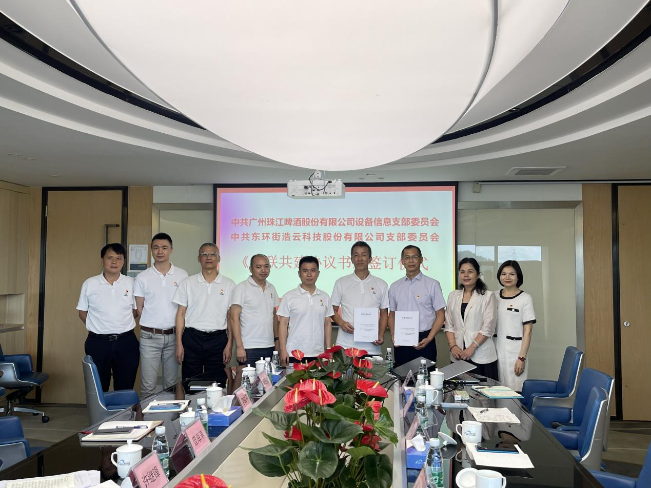 為深入學習貫徹習近平新時代中國特色社會主義思想,全面貫徹落實黨的二十大精神,擴大黨建交流學習平臺,8月9日下午,廣州珠江啤酒股份公司總會計師曾海濤、南沙公司副總經(jīng)理李錦平帶領設備信息黨支部7名支委到浩云科技有限公司,雙方簽訂紅聯(lián)共建協(xié)議,開展紅聯(lián)共建活動。