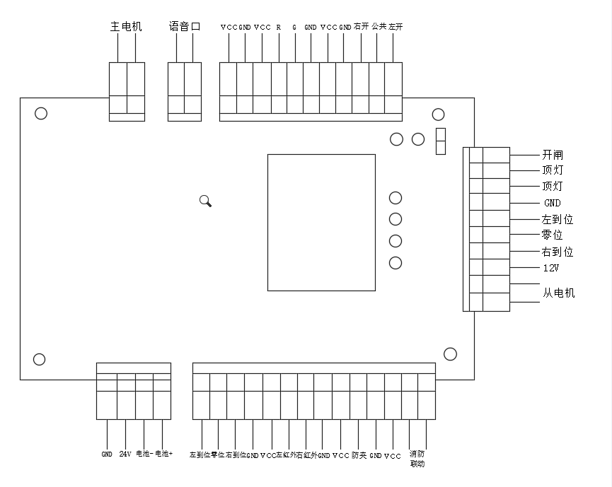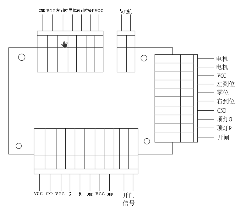 開(kāi)閘 頂燈 頂燈 GND 左到位 零位 右到位 12V 從單機(jī) |