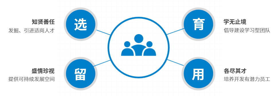 公司的人才管理原則是:知賢善任、學(xué)無止境、盛情珍視、各盡其才。公司全力幫助每位員工迅速成長,深入挖掘每位員工的潛力,最大程度地發(fā)揮其積極性與主動(dòng)性;同時(shí),重視每位員工個(gè)性與多樣性的有機(jī)結(jié)合,堅(jiān)持盡其才,才盡其用,各盡所能,盡智盡力,幫助每一位員工取得工作上的成功。